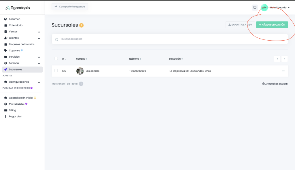 Luego de configurar todos los ajustes básicos de Agendapia, es fundamental que configures la ubicación de la sucursal, sin ella no podrás agregar personal ni servicios.