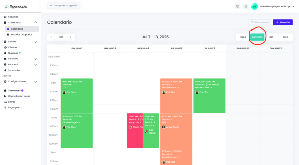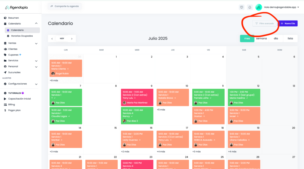 Filtro por Personal: Filtra para ver la agenda de un solo colaborador.