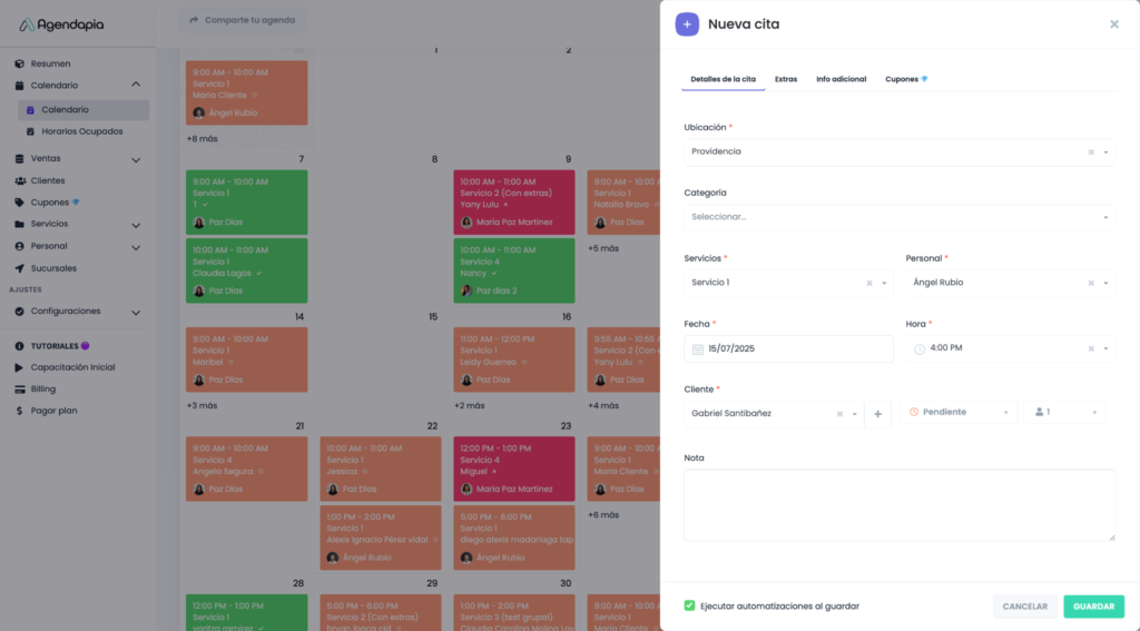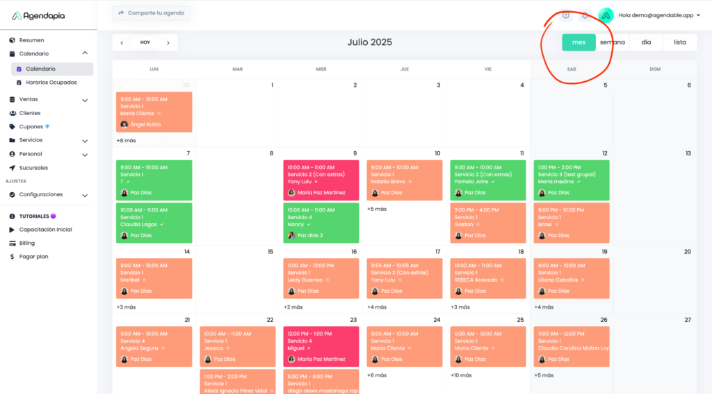El módulo calendario de Agendapia ofrece una vista centralizada de toda tu actividad, permitiendo un seguimiento fluido tanto para administradores como para el personal.