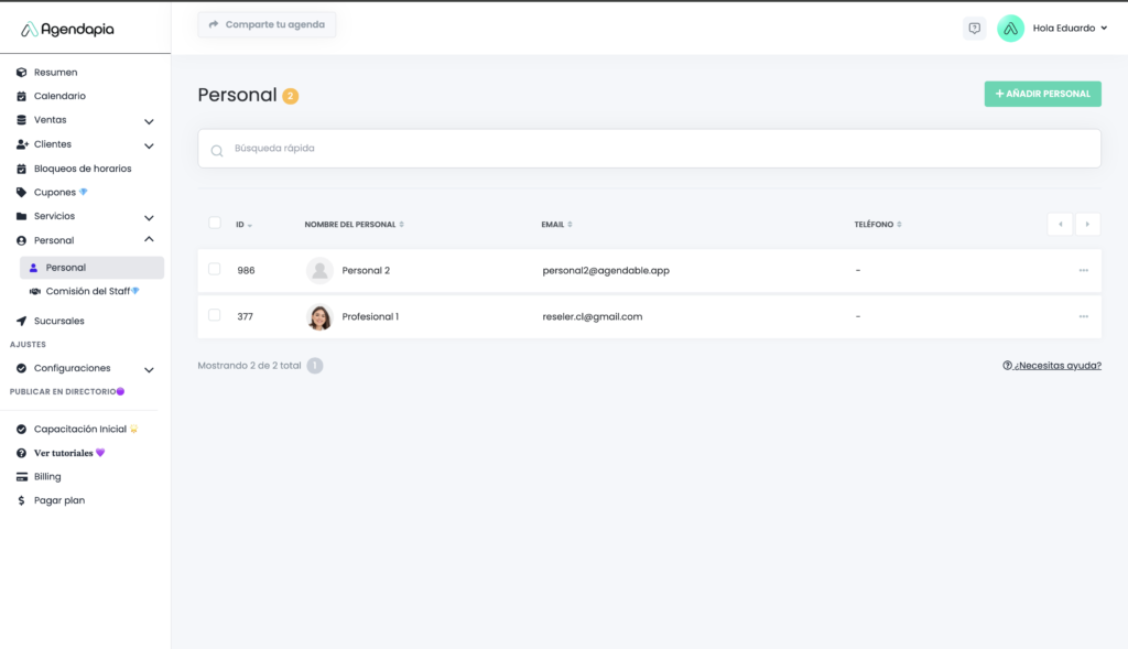 El personal es clave para que Agendapia sepa quién atiende, cuándo atiende y en qué lugar.
