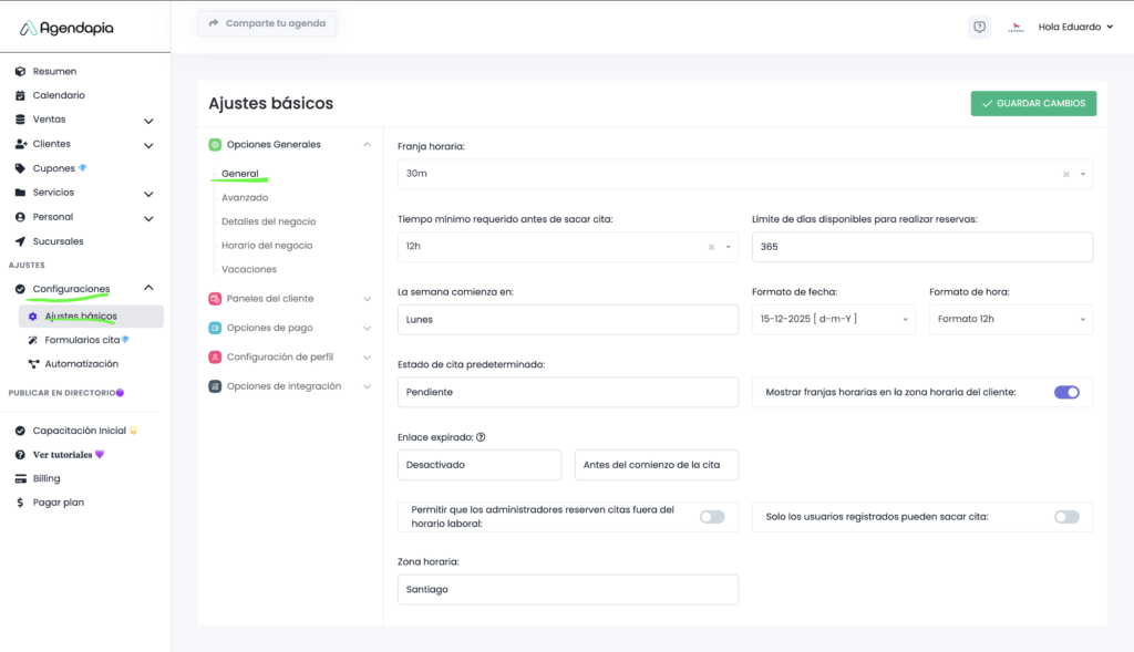 Para configurar lo básico de tu agenda en Agendapia, entra a: