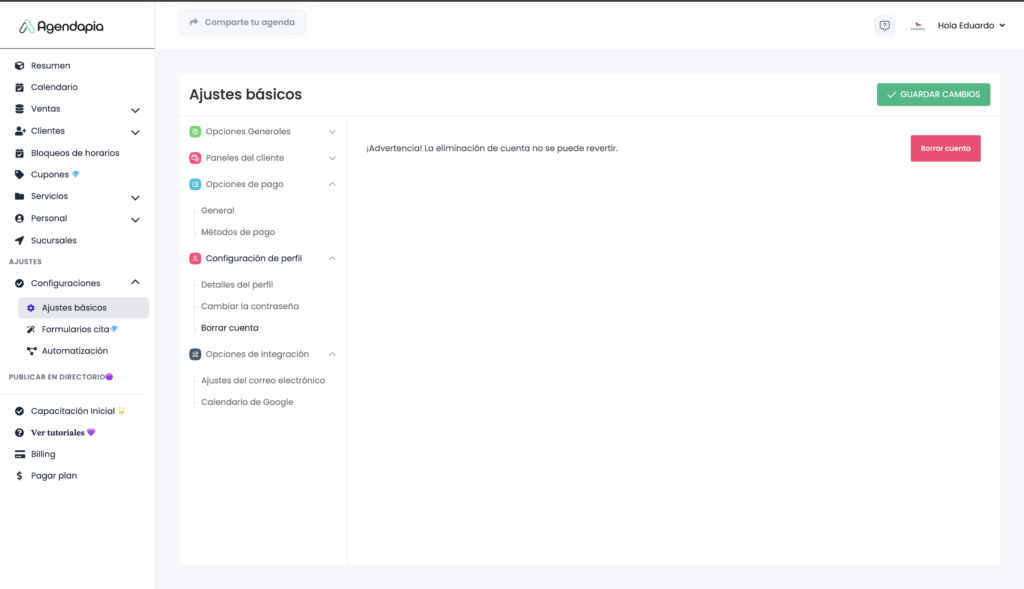 Esta opción elimina definitivamente tu cuenta de Agendapia.