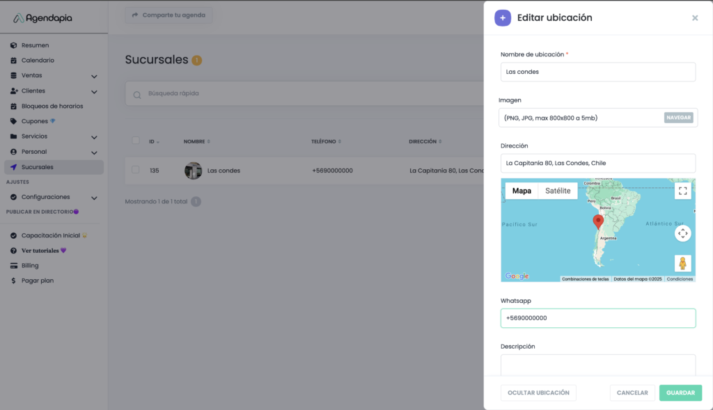 Luego de configurar todos los ajustes básicos de Agendapia, es fundamental que configures la ubicación de la sucursal, sin ella no podrás agregar personal ni servicios.