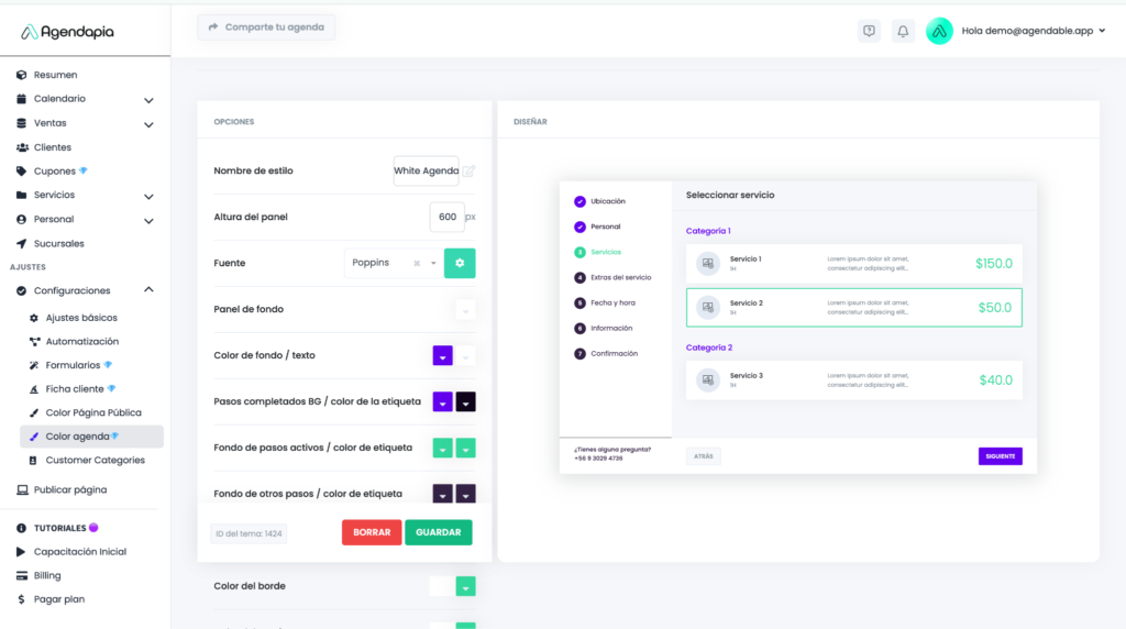 Si la tienes habilitada en tu plan, debes ir a Configuraciones ⮕ Color agenda pública.