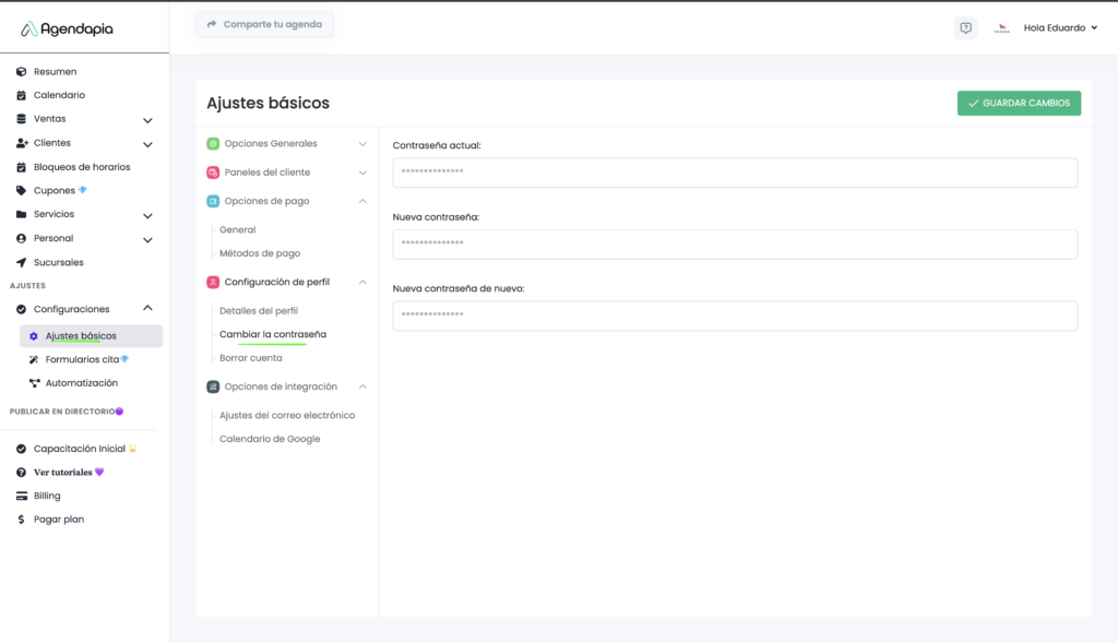 Aquí puedes modificar la contraseña de acceso a tu cuenta.